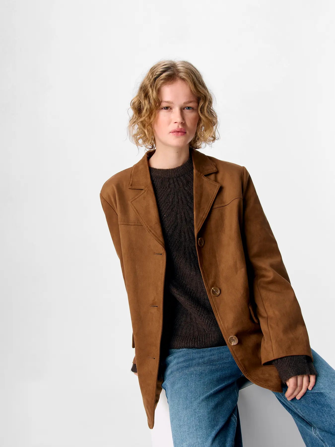 Esta americana de antelina de la marca .OBJECT es una de esas prendas protagonistas que elevan cualquier look al instante. Su tejido de antelina suave, con una caída espectacular, aporta un aire elegante y moderno, perfecta tanto para looks casuales como para conjuntos más arreglados.