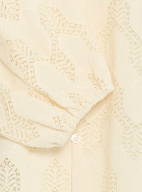 🤍 Está confeccionada en un tejido calado tipo “escalado”, que deja entrever sutilmente la piel o el top que lleves debajo. ¡Pura fantasía!