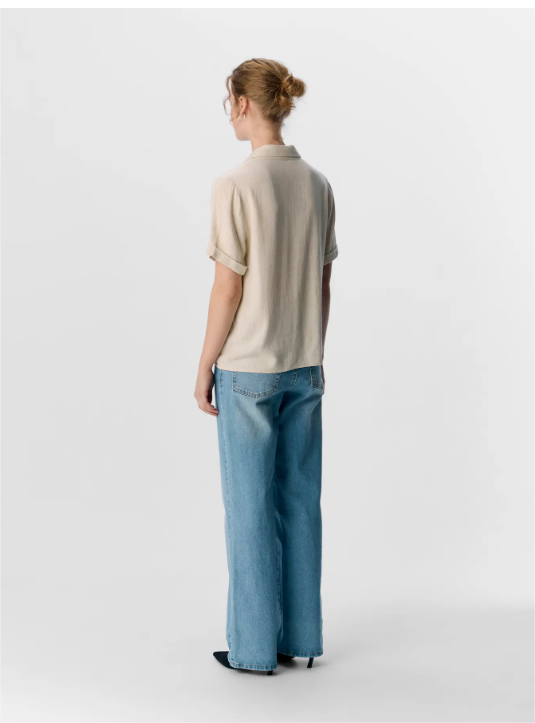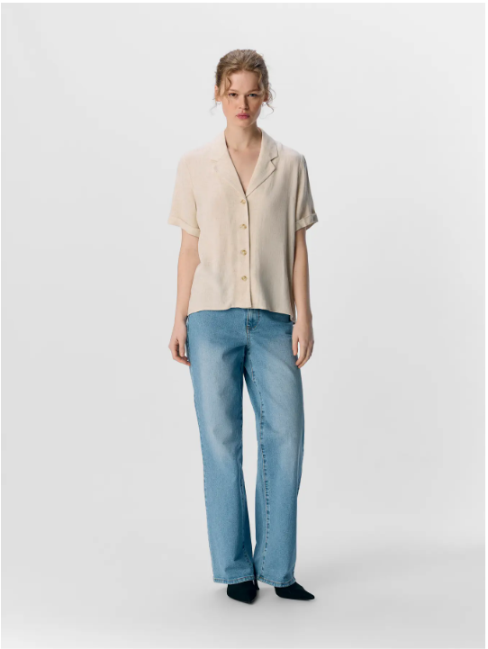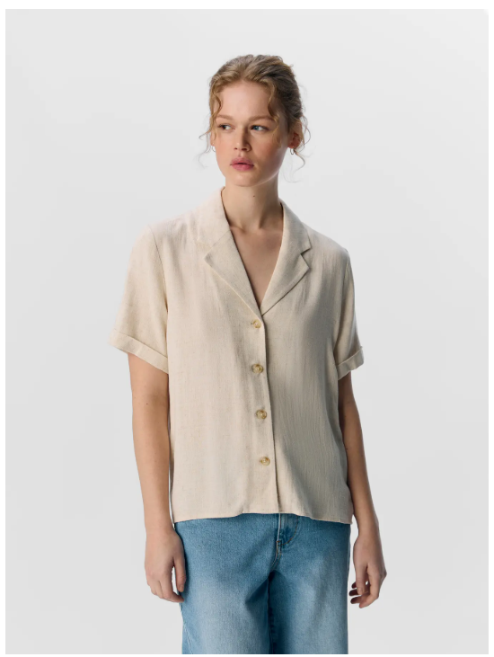 Con su manga corta y su confección vaporosa, esta camisa es perfecta tanto para looks arreglados como para outfits más relajados. Combínala con pantalones de vestir para un look sofisticado o con jeans para un estilo desenfadado y chic.
