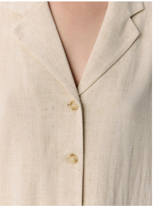 Su cuello tipo blazer le da un aire refinado y moderno, aportando estructura sin perder comodidad. Además, los botones nacarados añaden un toque sutil de elegancia, convirtiéndola en una prenda especial para cualquier ocasión.