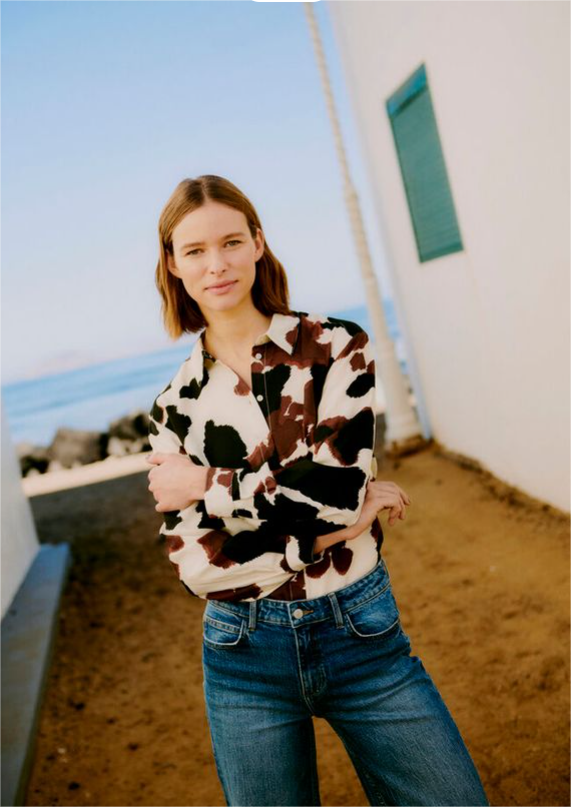 La camisa BYIHAMMA REG SHIRT es la prueba de que el animal print sigue evolucionando… y ahora lo hace en su versión más fresca y original: con un estampado tipo vaca absolutamente encantador. El fondo en beige suave sirve de lienzo para manchas en negro y marrón, creando un patrón único, natural y con muchísima personalidad 🐄🖤🤎.