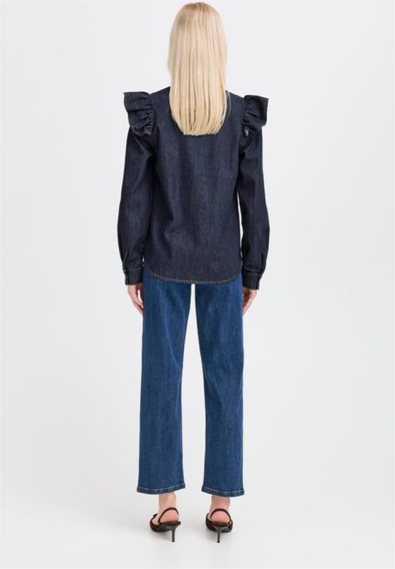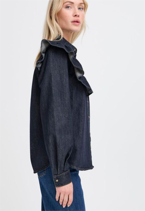 👖✨ Camisa vaquera con volante y encanto western – ¡el toque denim que transforma cualquier look! 🤎