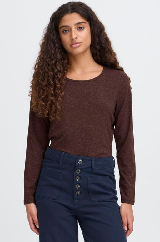 🌟 ¿El detalle que enamora? El hilo de lurex discreto que recorre toda la camiseta, aportando un brillo delicado sin resultar exagerado. Es de esas prendas que capturan la luz de forma sutil, dándole un aire sofisticado incluso al look más básico.