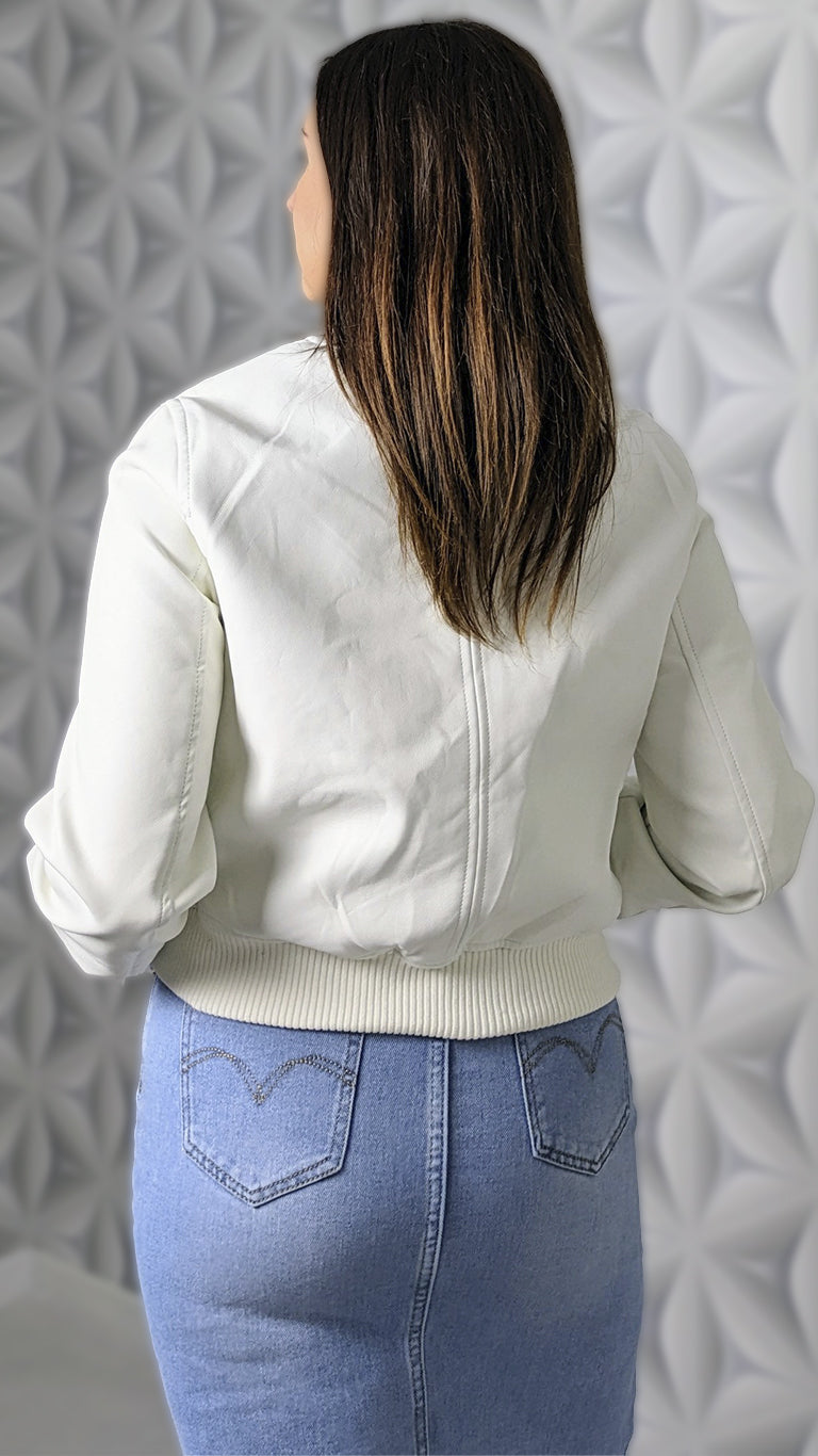 La chaqueta en polipiel ALTAN corta, con forro en su interior y engomado en punto en las mangas, cuello y parte de abajo para darle un toque único y distinto a la chaqueta. Cierre de cremallera, con bolsillos funcionales y con cierre de cremallera hace de esta chaqueta una prenda funcional y distinta. Es una prenda de vestir que combina estilo moderno y funcionalidad, ideal para añadir un toque de rebeldía y elegancia a cualquier atuendo.