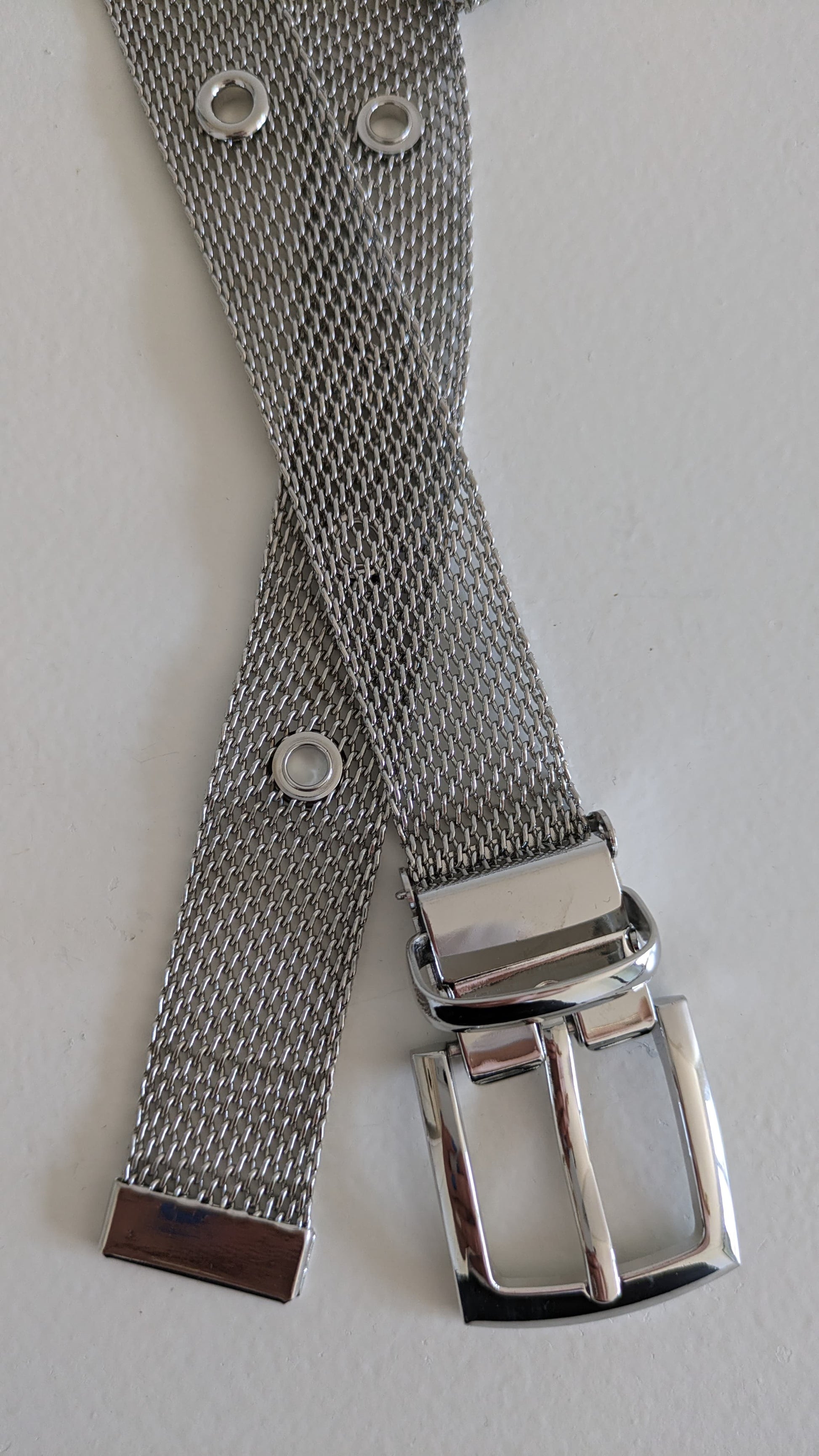 105 cm de largo y 2,5 cm de ancho. Cinturón no elástico.