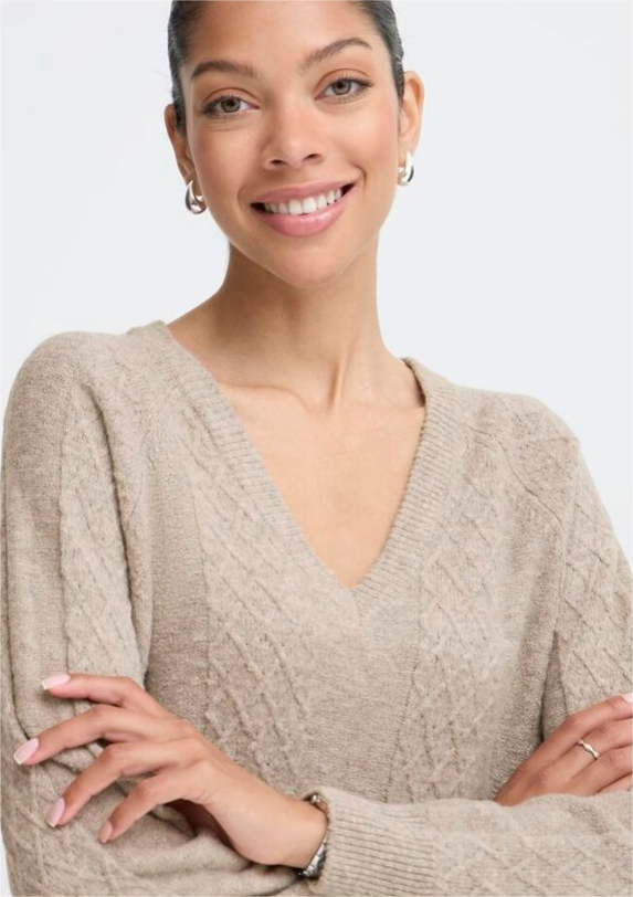 🧶 Jersey escote pico en color natural – dulzura y estilo en punto suave 🤍✨