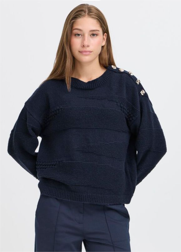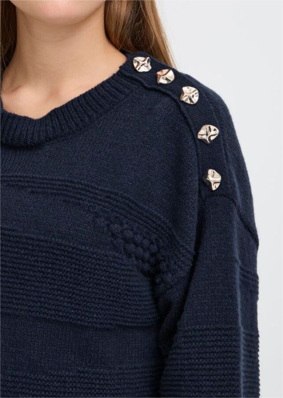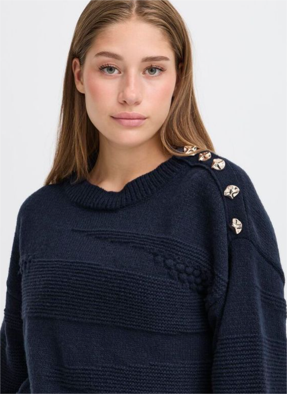💛 Pero lo que realmente lo hace especial son sus botoncitos dorados en el hombro, un detalle sutil pero absolutamente glam que transforma un básico en una prenda wow. Es como si el jersey te guiñara un ojo de elegancia.