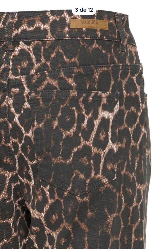 Descubre el pantalón vaquero b.young que despertará pasiones con cada paso. Imagina un animal print salvaje y elegante, creado para las amantes de la moda que no temen brillar. Su diseño combina la iconicidad del estampado con la comodidad de un corte cuidadamente pensado para brillar como nunca: tiro alto que alarga la silueta, pierna recta que aporta sofisticación y largo ideal para lucir ese calzado con estilo.